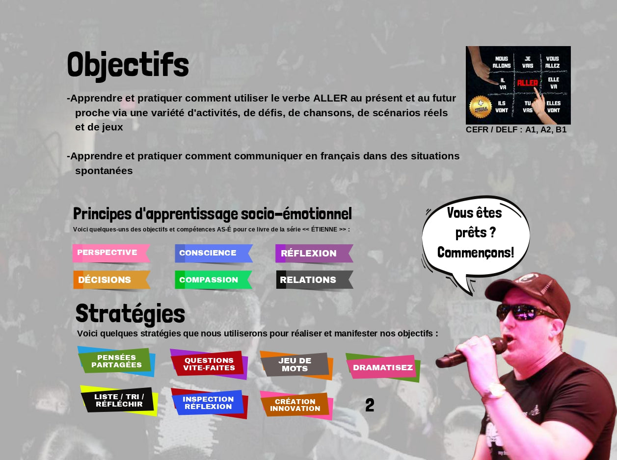 Découvrez les lecteurs français de l'interprète primé ÉTIENNE. Il écrit des chansons et parcourt le monde dans des théâtres et des arènes à guichets fermés. Lisez maintenant les romans graphiques français qui aident les élèves à apprendre le français de manière interactive. Chaque livre est accompagné de questions et de codes QR vers des vidéos musicales et des activités.Lisez, chantez et dansez pour découvrir le verbe ALLER. Comprend des activités pratiques et interactives pour accompagner la chanson et la vidéo. Visitez : www.rockyourclass.com
