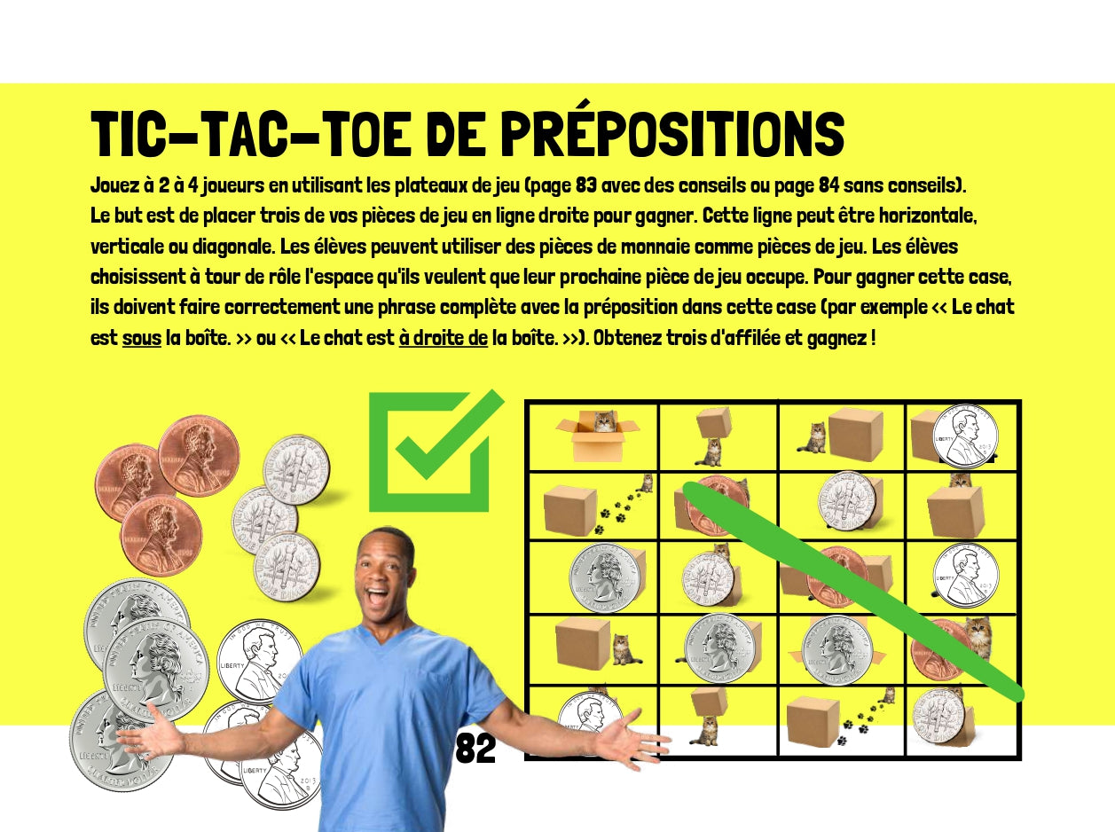 -Included game boards for French vocabulary games of chess, checkers, tic-tac-toe, and more.
