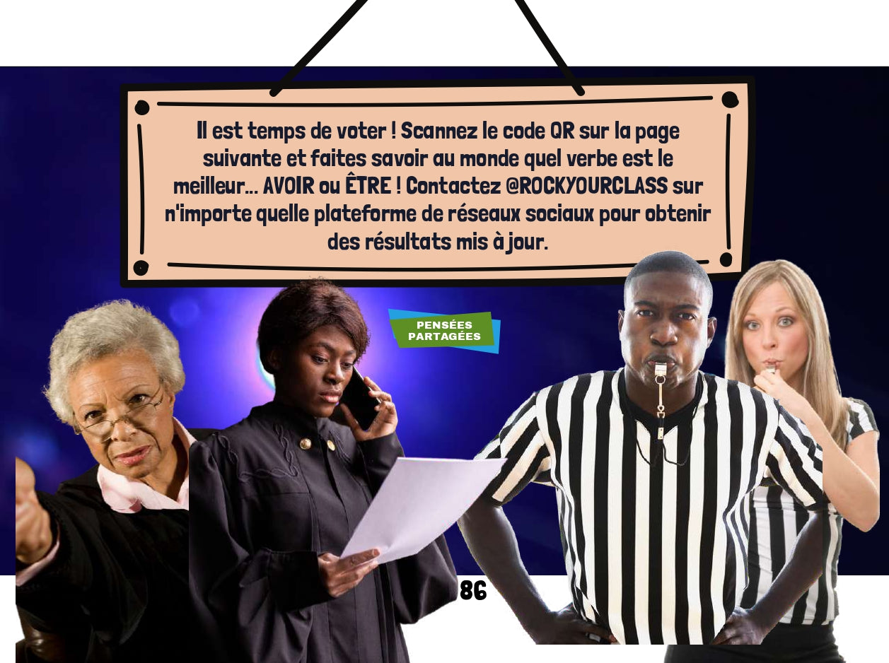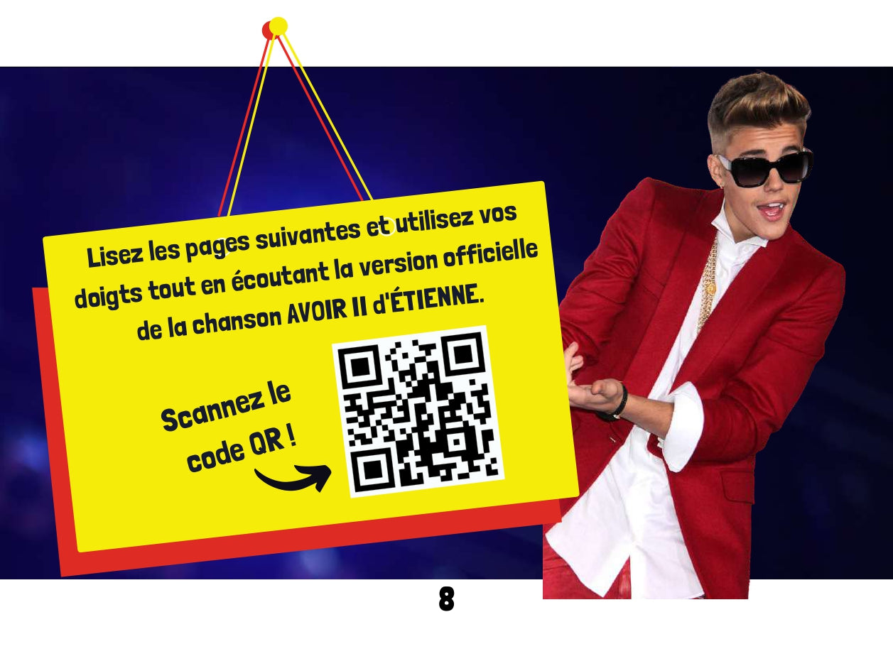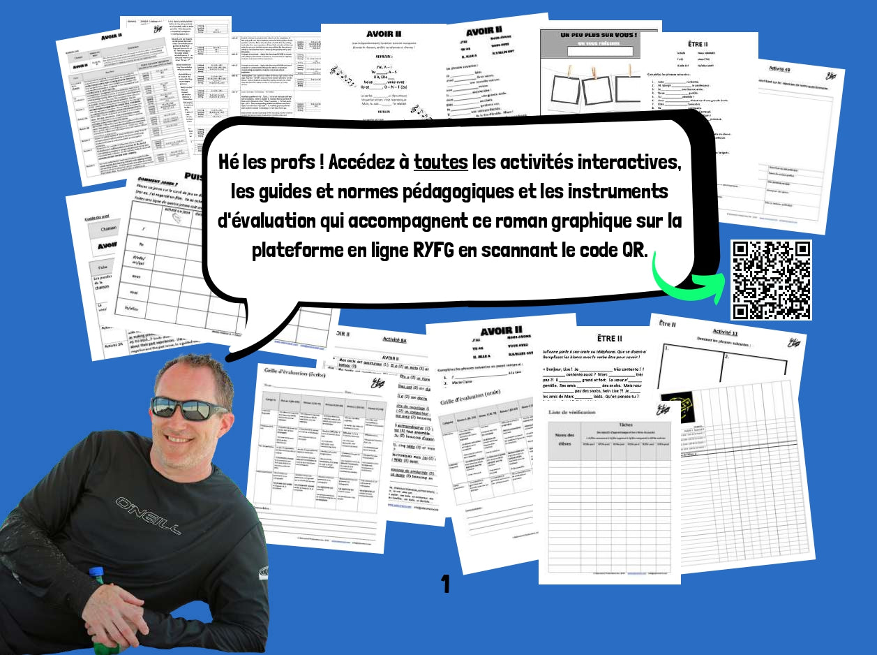 Découvrez les lecteurs français de l'interprète primé ÉTIENNE. Il écrit des chansons et parcourt le monde dans des théâtres et des arènes à guichets fermés. Lisez maintenant les romans graphiques français qui aident les élèves à apprendre le français de manière interactive. Chaque livre est accompagné de questions et de codes QR vers des vidéos musicales et des activités. Deux leçons dans un livre ! Tout d'abord, nous apprenons tout sur le verbe AVOIR. Ensuite, on apprend le verbe ÊTRE. On apprend des trucs pour savoir les manipuler dans des phrases. Après avoir lu et essayé toutes les activités interactives, les lecteurs votent pour leur verbe préféré. Qui va gagner? Contactez @rockyourclass sur n'importe quel compte social pour obtenir les derniers résultats. Ce livre fait partie de la série de romans graphiques interactifs français ÉTIENNE.
