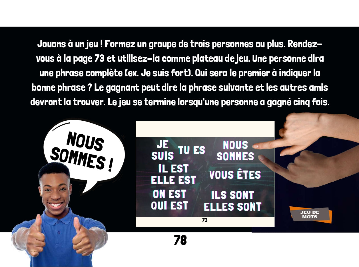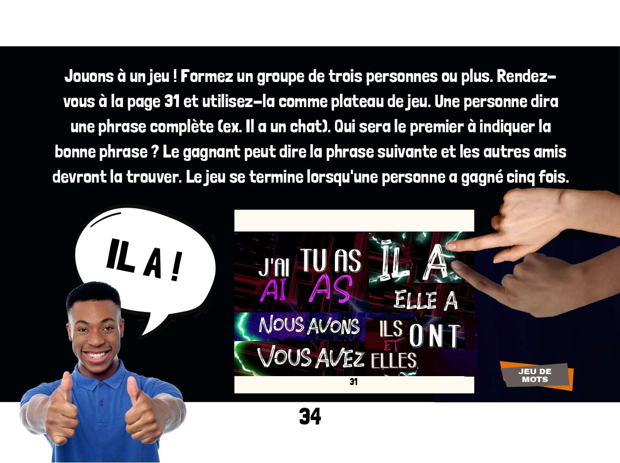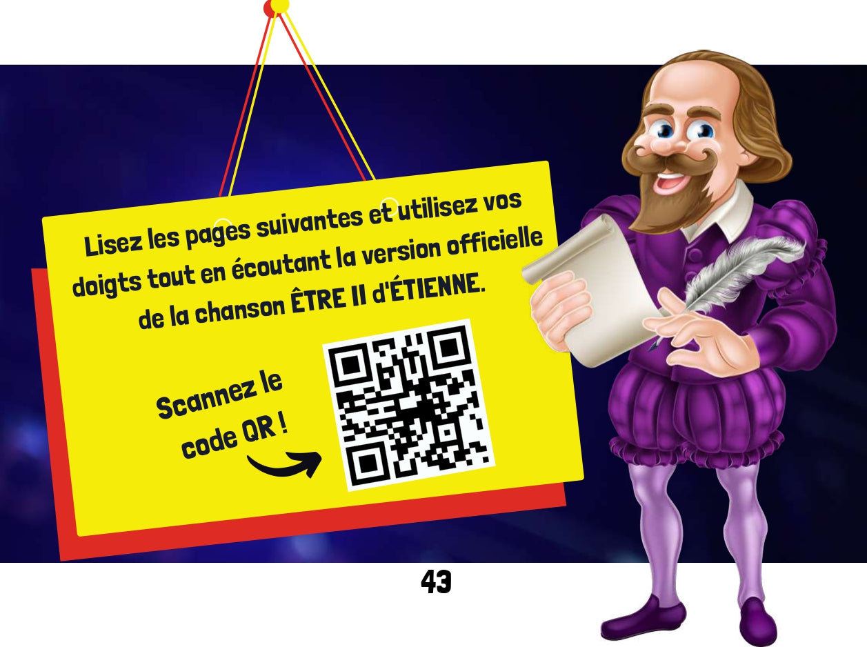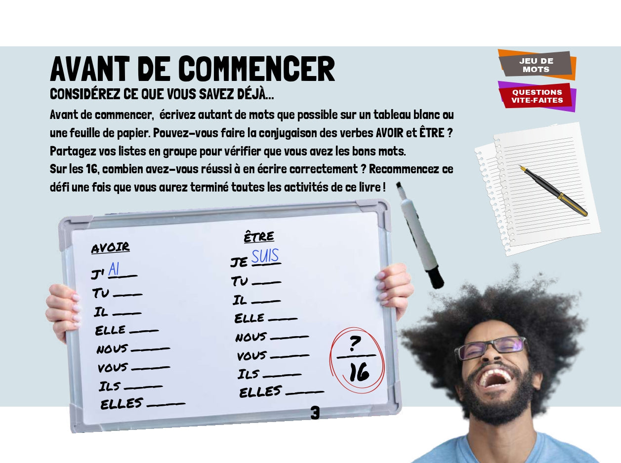 Découvrez les lecteurs français de l'interprète primé ÉTIENNE. Il écrit des chansons et parcourt le monde dans des théâtres et des arènes à guichets fermés. Lisez maintenant les romans graphiques français qui aident les élèves à apprendre le français de manière interactive. Chaque livre est accompagné de questions et de codes QR vers des vidéos musicales et des activités. Deux leçons dans un livre ! Tout d'abord, nous apprenons tout sur le verbe AVOIR. Ensuite, on apprend le verbe ÊTRE. On apprend des trucs pour savoir les manipuler dans des phrases. Après avoir lu et essayé toutes les activités interactives, les lecteurs votent pour leur verbe préféré. Qui va gagner? Contactez @rockyourclass sur n'importe quel compte social pour obtenir les derniers résultats. Ce livre fait partie de la série de romans graphiques interactifs français ÉTIENNE.