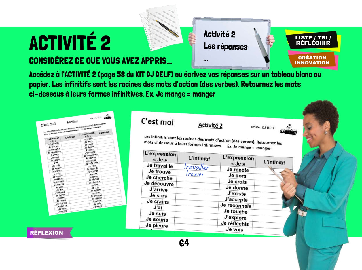 This French reader centres on « JE » statements and is filled with a plethora of French verbs, both regular and irregular. Each « JE » statement is accompanied by an image, allowing students to achieve comprehension quickly. With the vibrant colours and diverse characters, this reader serves as a springboard to many different activities found on the learning platform. Just follow the directions on the main product page for the reader to obtain forever access to this amazing platform full of detailed PDF explanations, activities, and worksheets. I especially like the activity « Un jeu de contraires » where students must find verb opposites. My students love the customizable skits and the chance to draw their comprehension of the verb within the context of a mini-sentence.