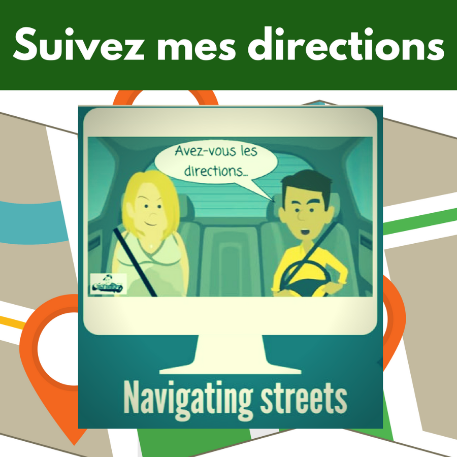 | Suivez mes directions ! | A2, B1, B2 | DJ DELF navigates students through the streets of his city. Activities cover routine tasks as one goes about their business navigating to and from all types of buildings found in a typical city. |