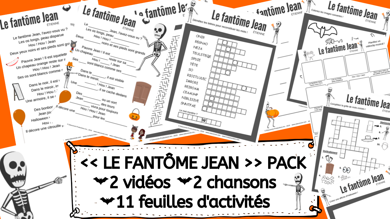 -Complete activity package featuring various listening, reading and writing activities and a sheet for your students to plan their own music video for "Le fantôme Jean" (11 pages in total)
