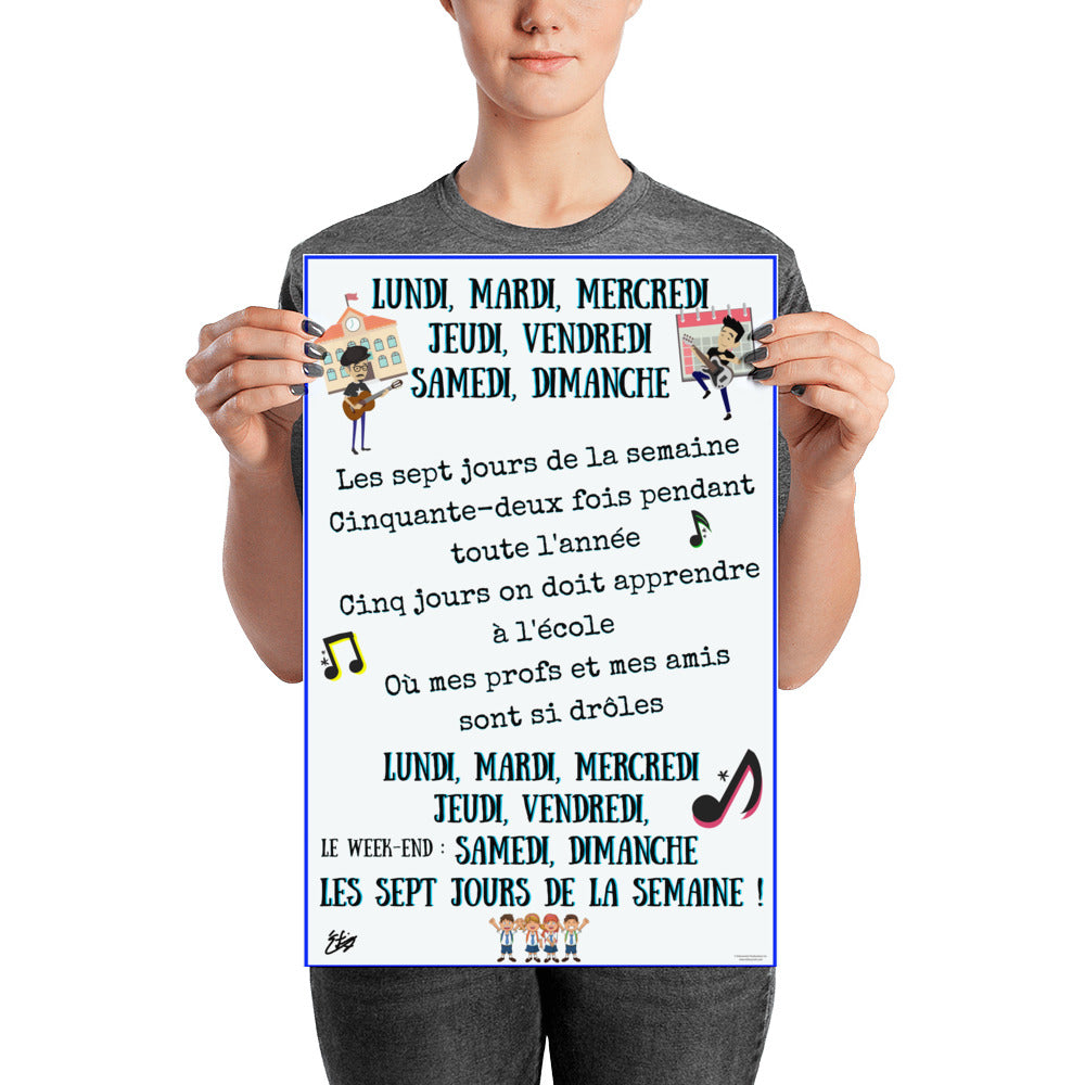 Sung to the theme of the song "Meet the Flintstones," this lyric poster for the song "Les 7 jours" by Étienne will get your students singing and never forgetting the days of the week. A statement in any room. These matte, museum-quality posters are printed on durable, archival paper.