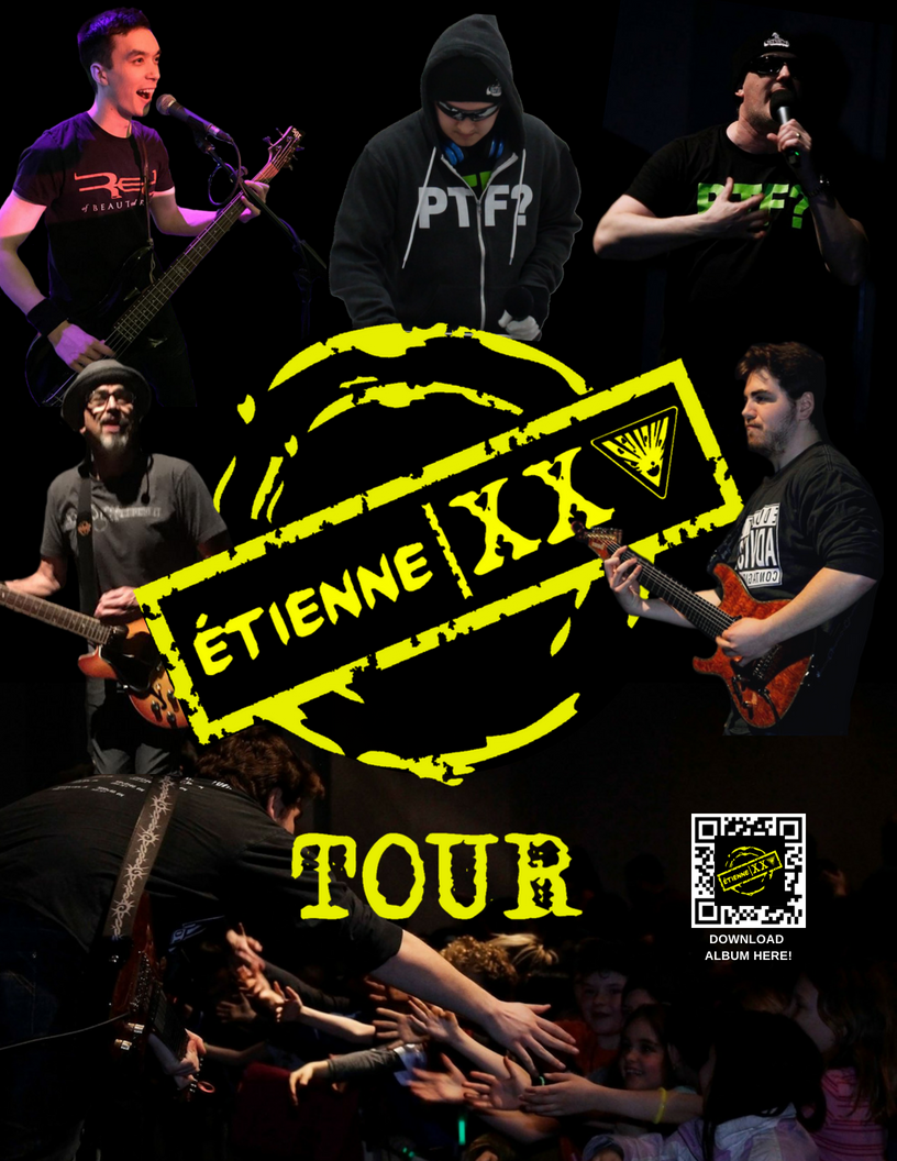 Front: Interactive poster. Scan the QR code for free download of songs from the upcoming new ÉTIENNE XXV album.
