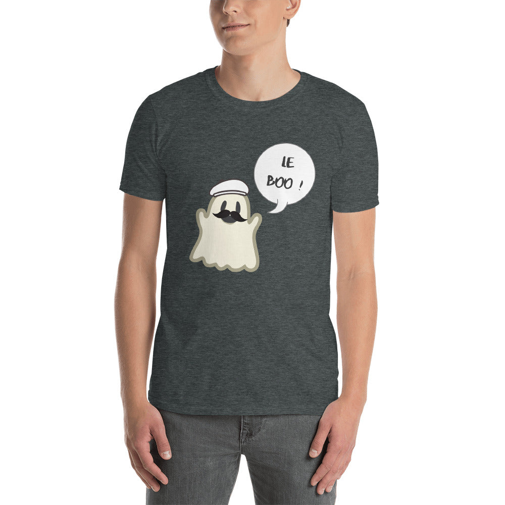 Halloween Spoofy-Spooky Bilingual Ghost saying "Le boo" Short-Sleeve Unisex T-Shirt