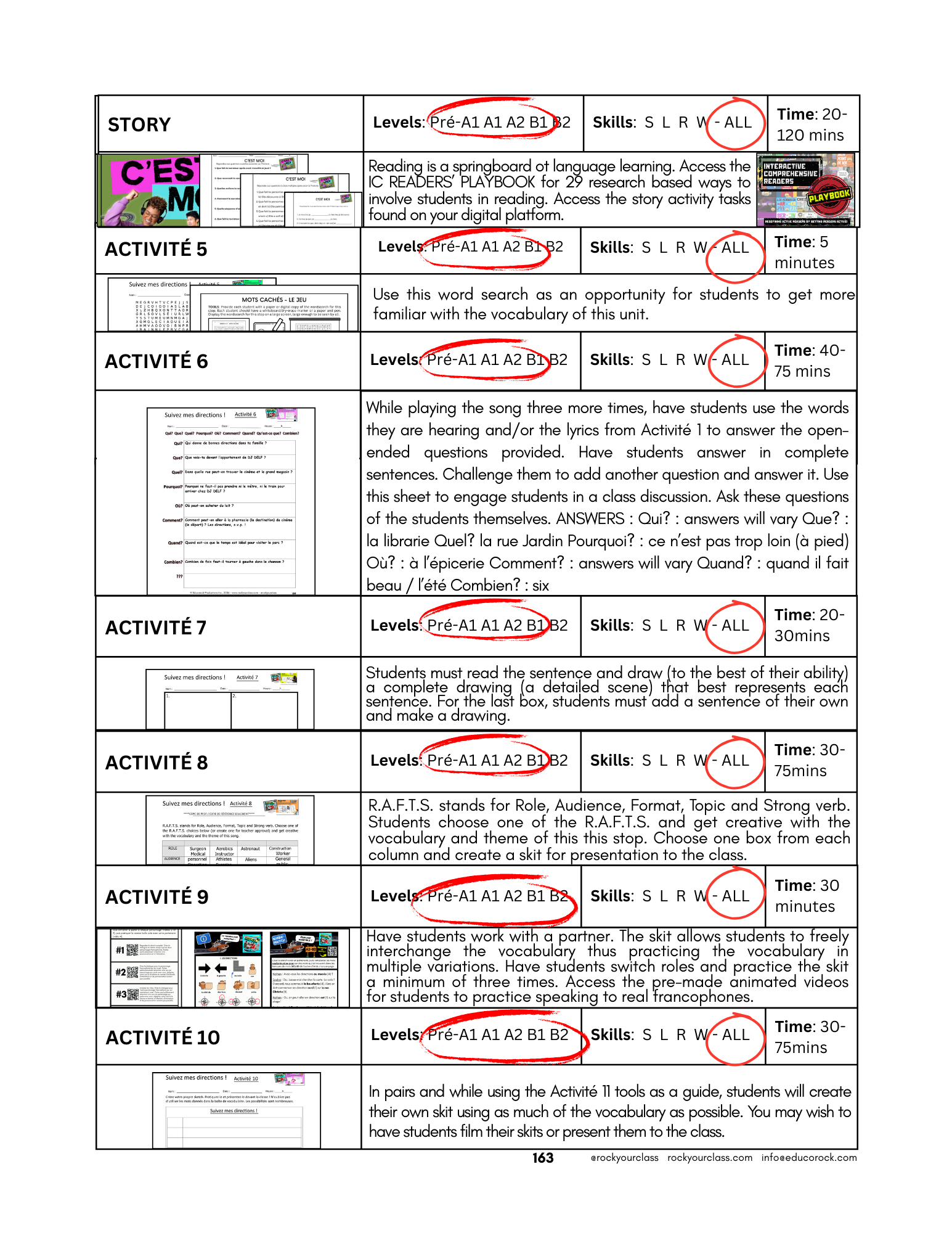 Levels: Core French Grades 3-10, French Immersion grades 2-9, CEFR levels A1, A2, B1 / ACTFL: Beginner to Intermediate (Levels 1-3)