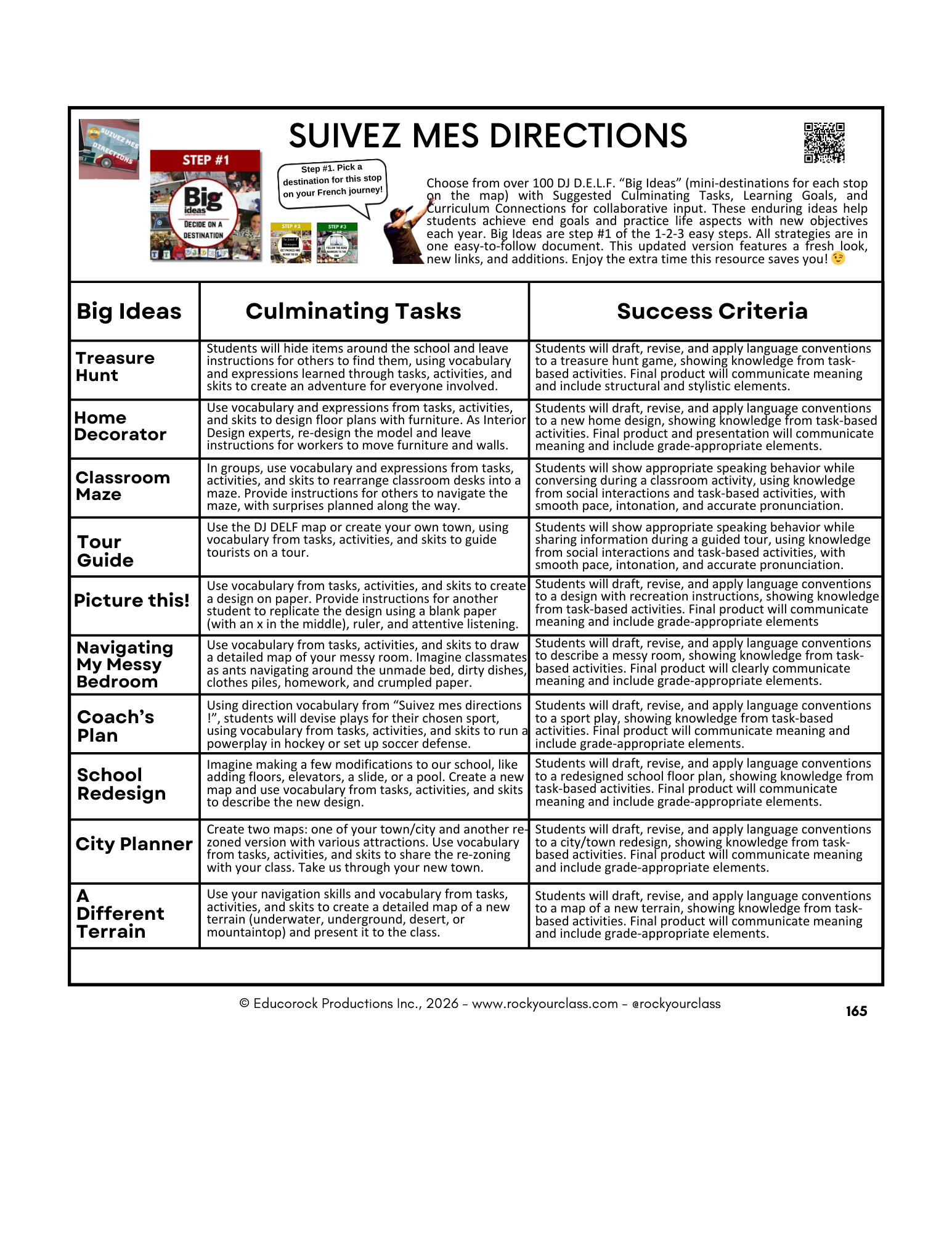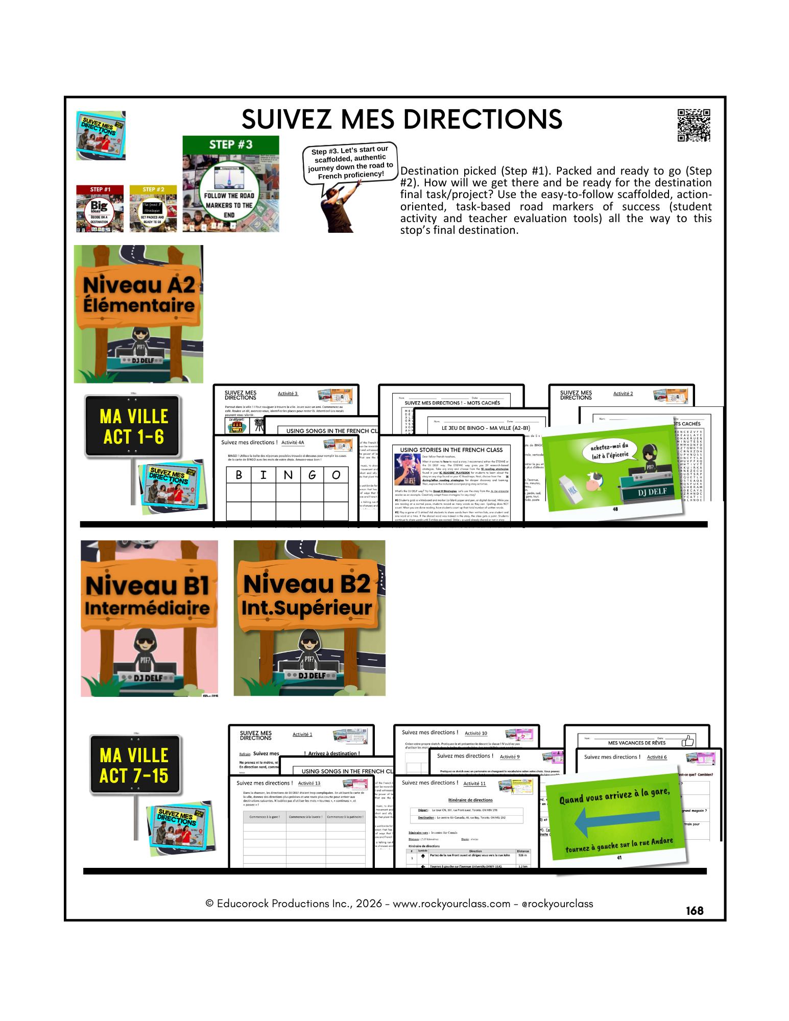 The SUIVEZ MES DIRECTIONS interactive comprehensive reader comes with a story, maps, activities, a complete city for your classroom, videos, a skit, final projects, assessment support, and so much more.