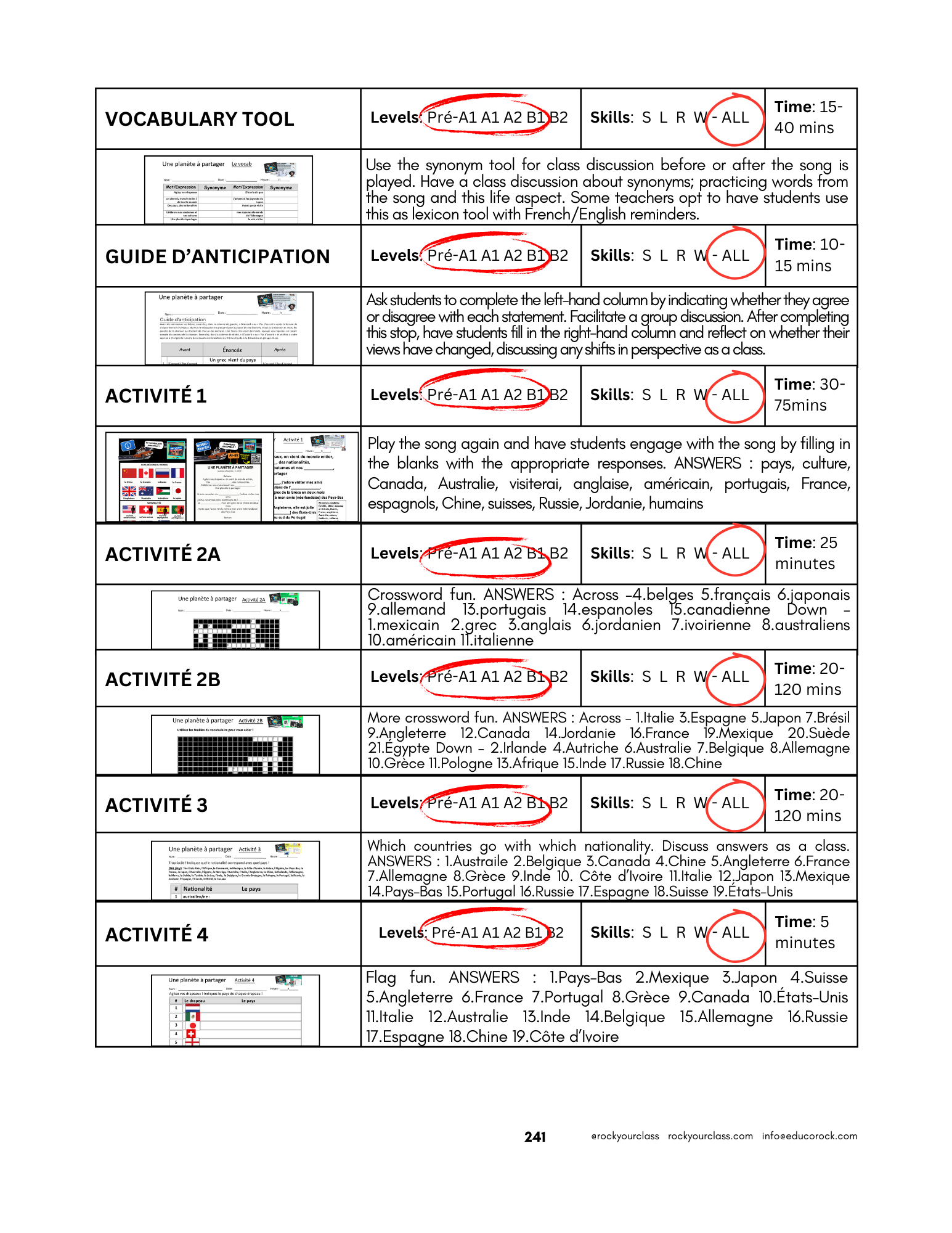Levels: Core French Grades 5-11, French Immersion grades 4-10, CEFR levels A1, A2, B1, B2 / ACTFL: Beginner to Advanced (Levels 1-4)
